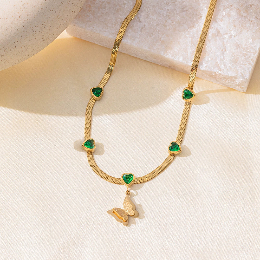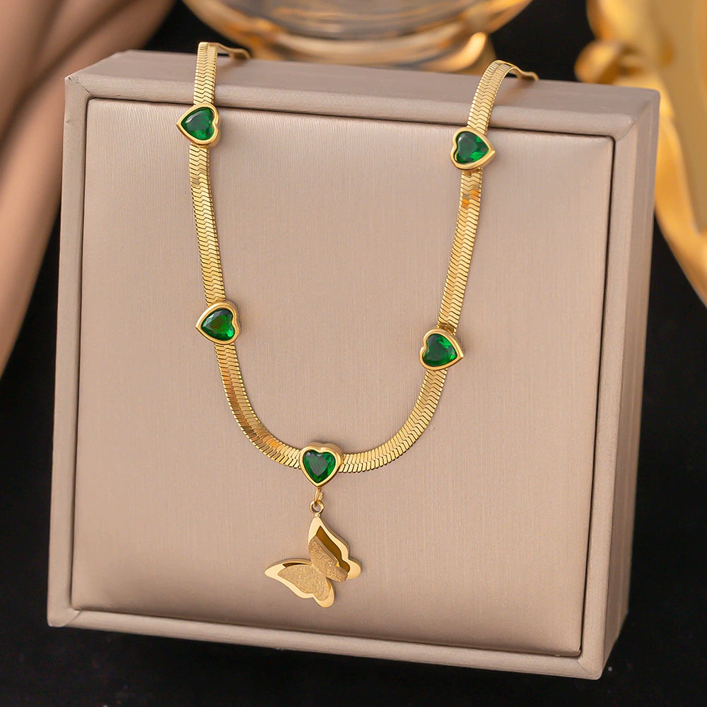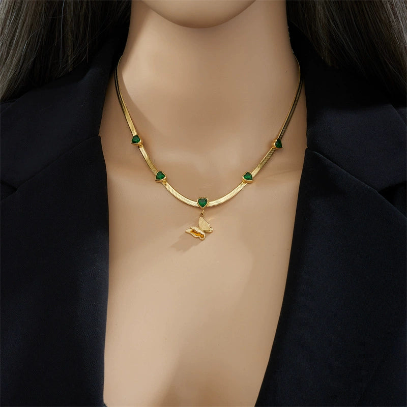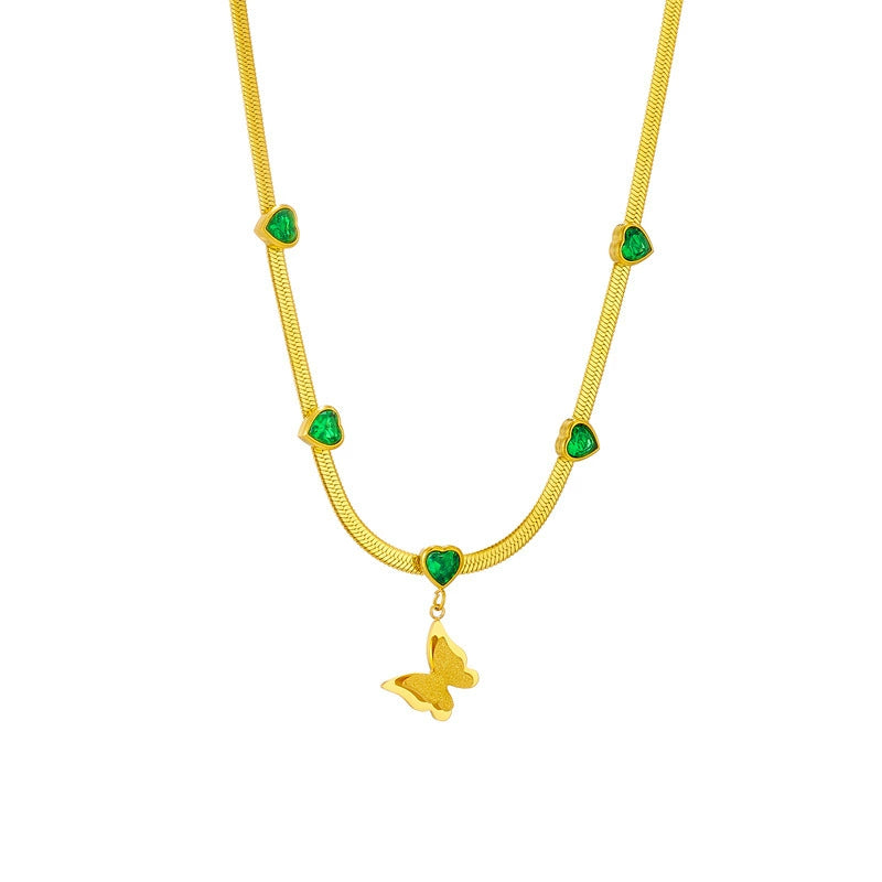 Wholesale Titanium Steel Frosted Stereo Butterfly Pendant With Diamond Heart Blade Snake Bone Chain Necklace For Women