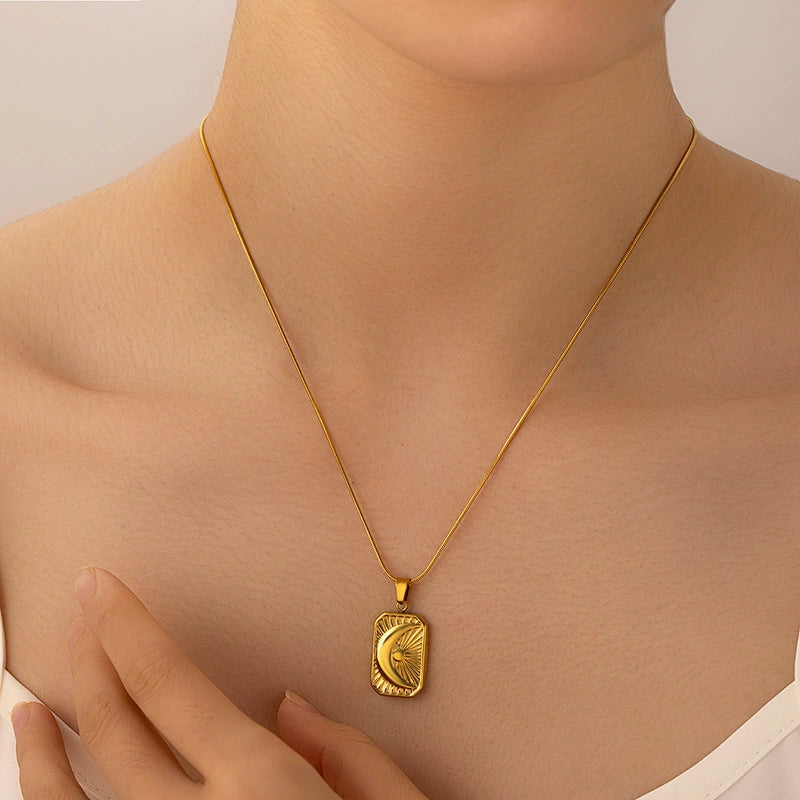 Wholesale Titanium Steel Geometric Star Moon Necklace Fashion Niche Electroplating Design For Women