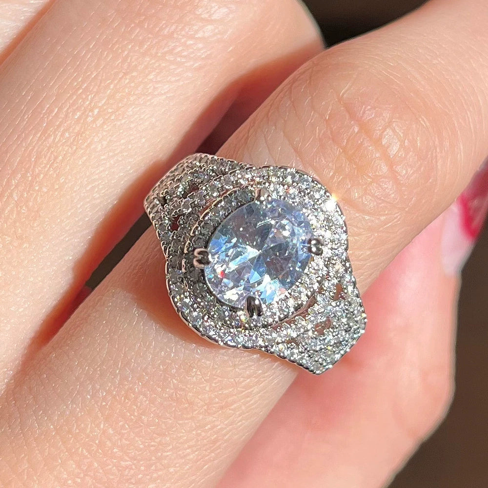 Wholesale Women's Copper Wedding Ring With Geometric Pattern Hand Inlaid Zircon And Platinum Plated