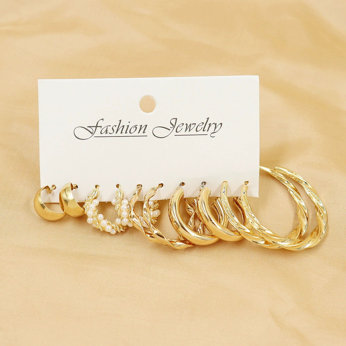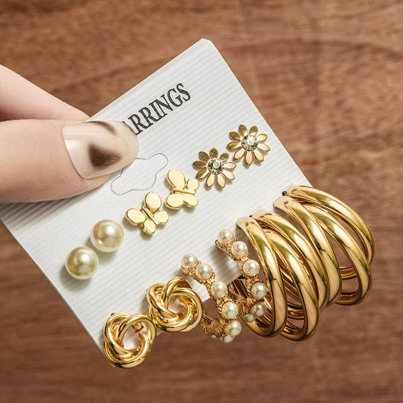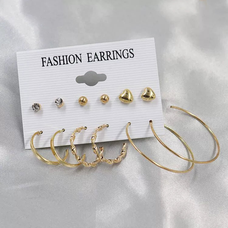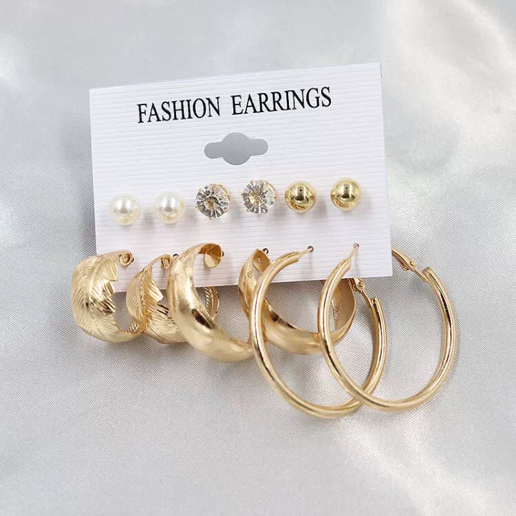 Wholesale Women's Exaggerated Metal Geometric C Shaped Electroplated Alloy Circle Earrings 6 Pair Set