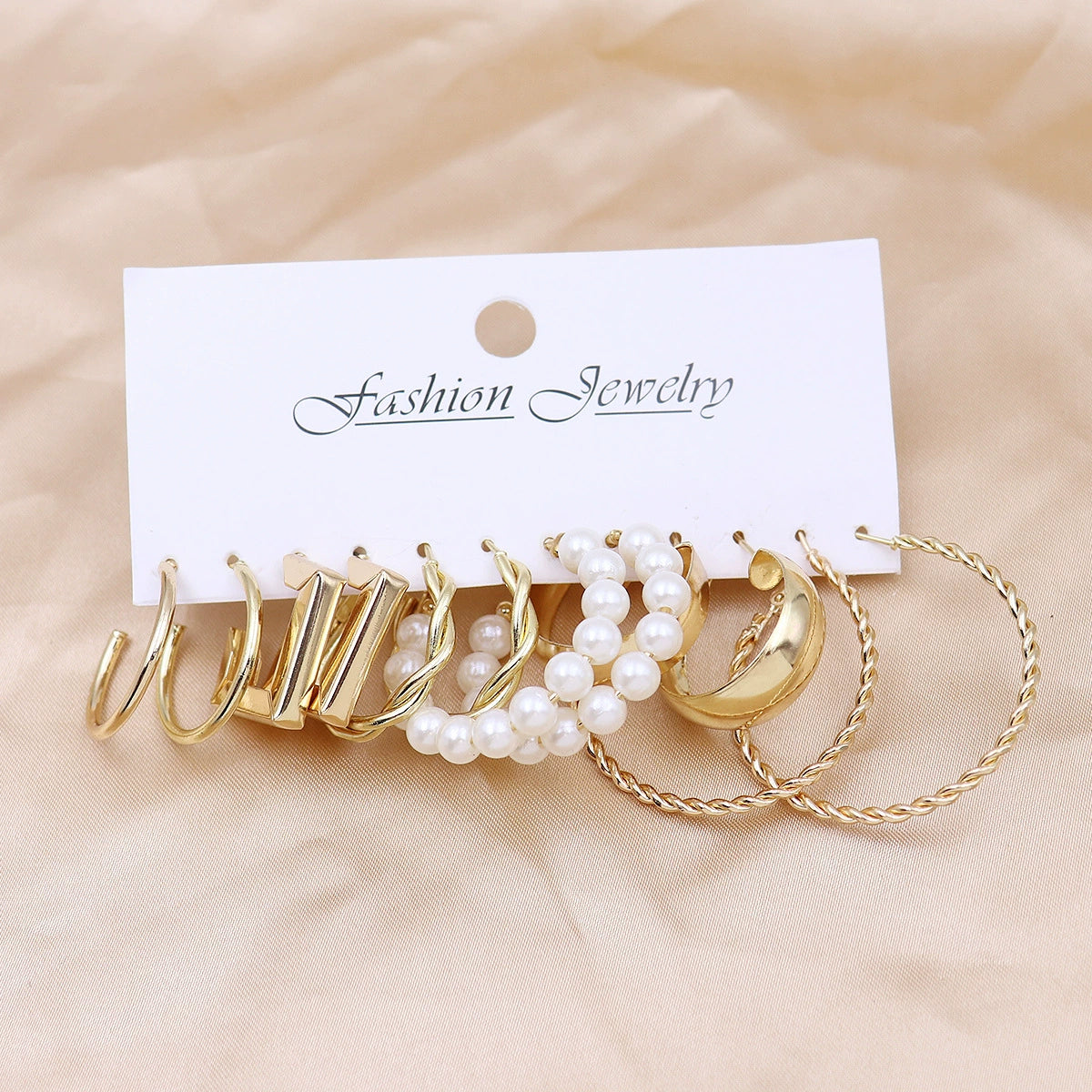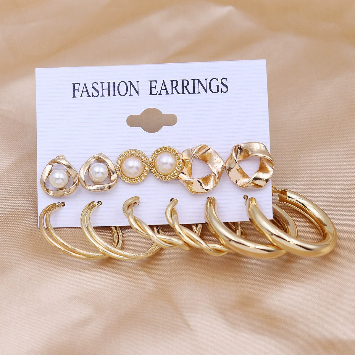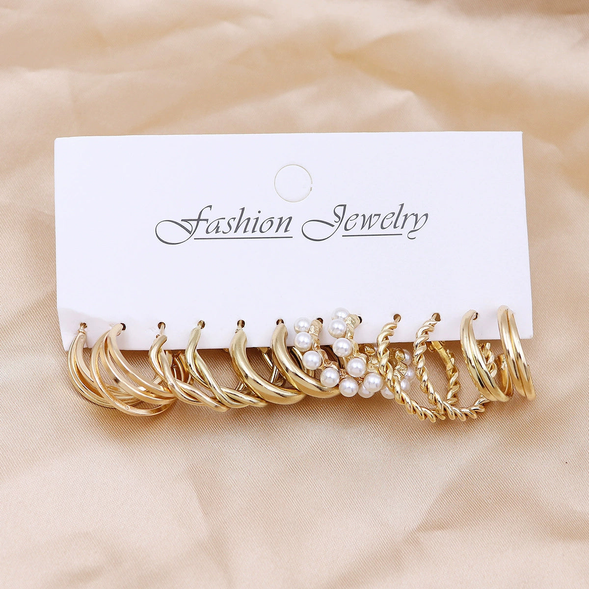 Wholesale Women's Exaggerated Metal Geometric C Shaped Electroplated Alloy Circle Earrings 6 Pair Set
