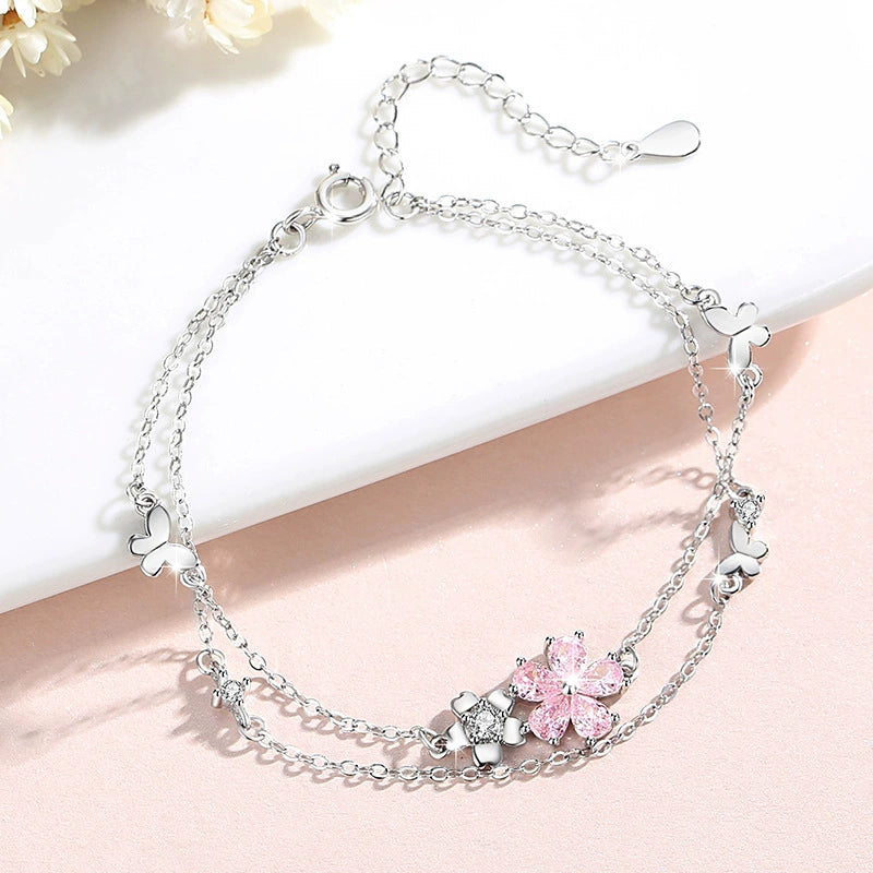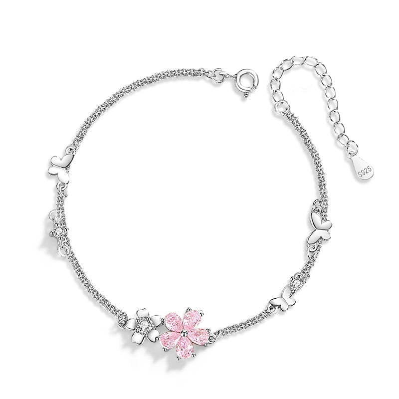 Wholesale Women's Fashion Cherry Blossom And Flower Sterling Silver 925 Electroplated Bracelet