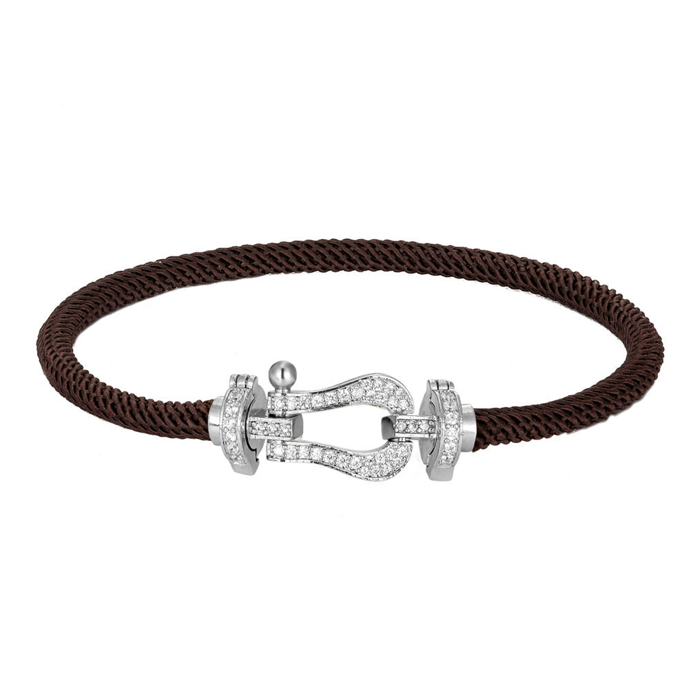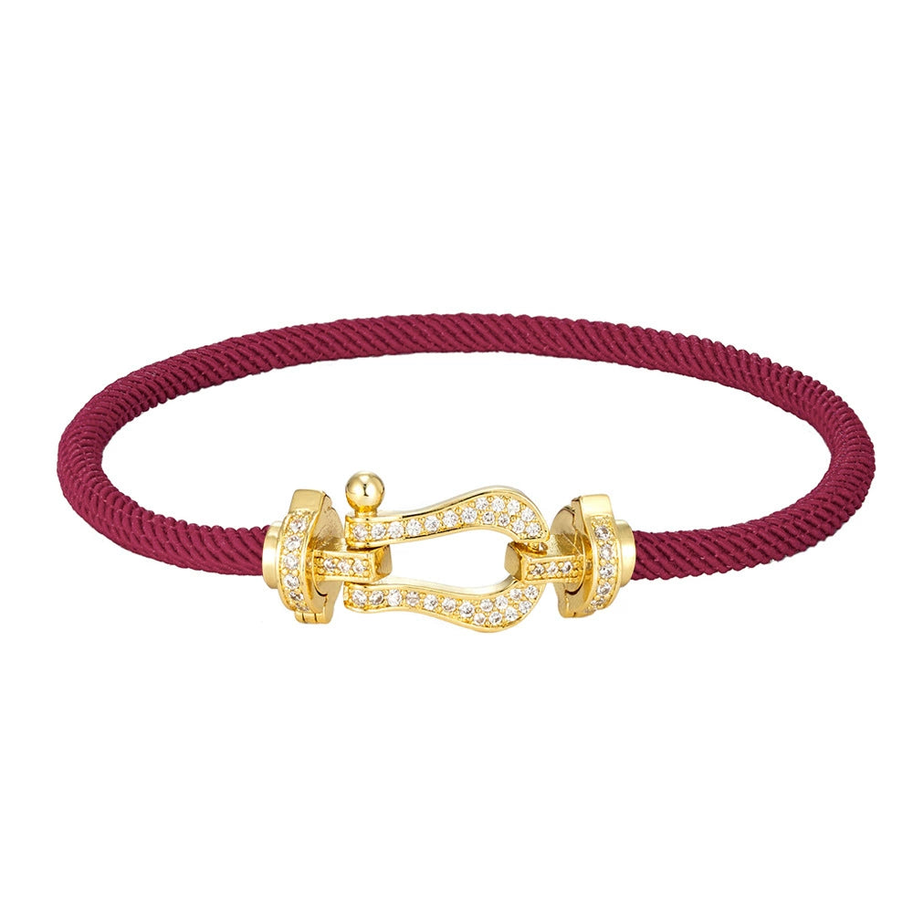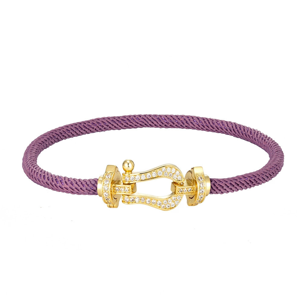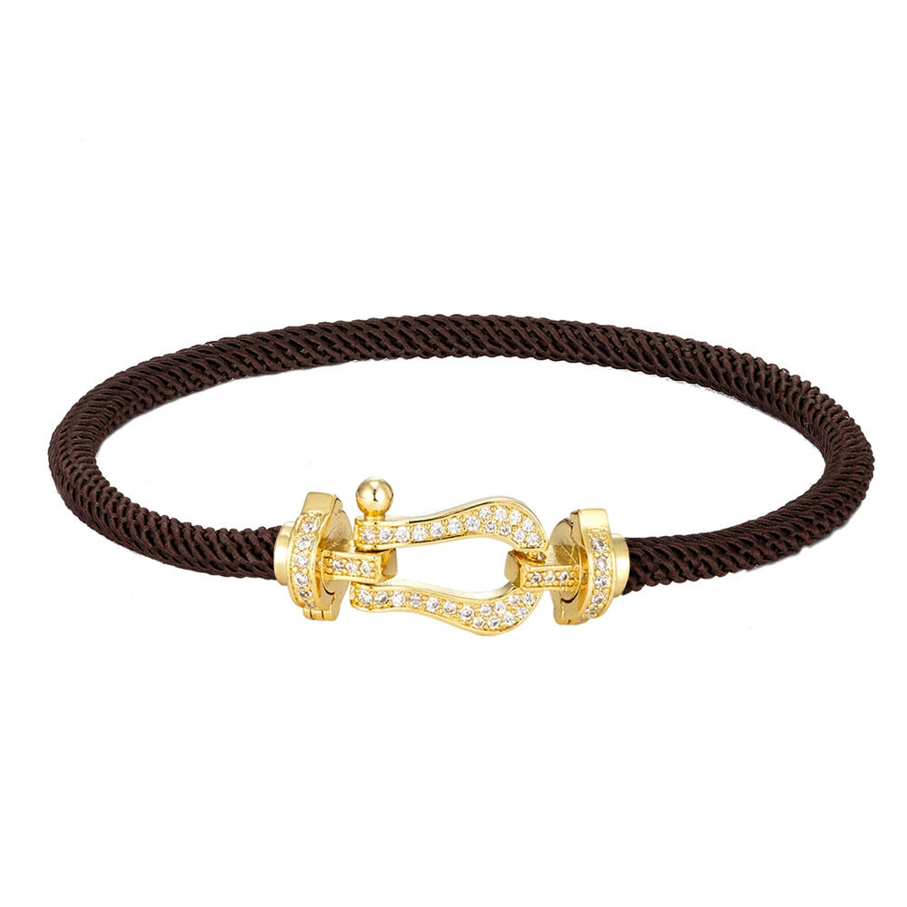 Wholesale Women's Fashion Woven Milan Rope Bracelet With Horseshoe Buckle And U Head Micro Inlaid Zircon Electroplated