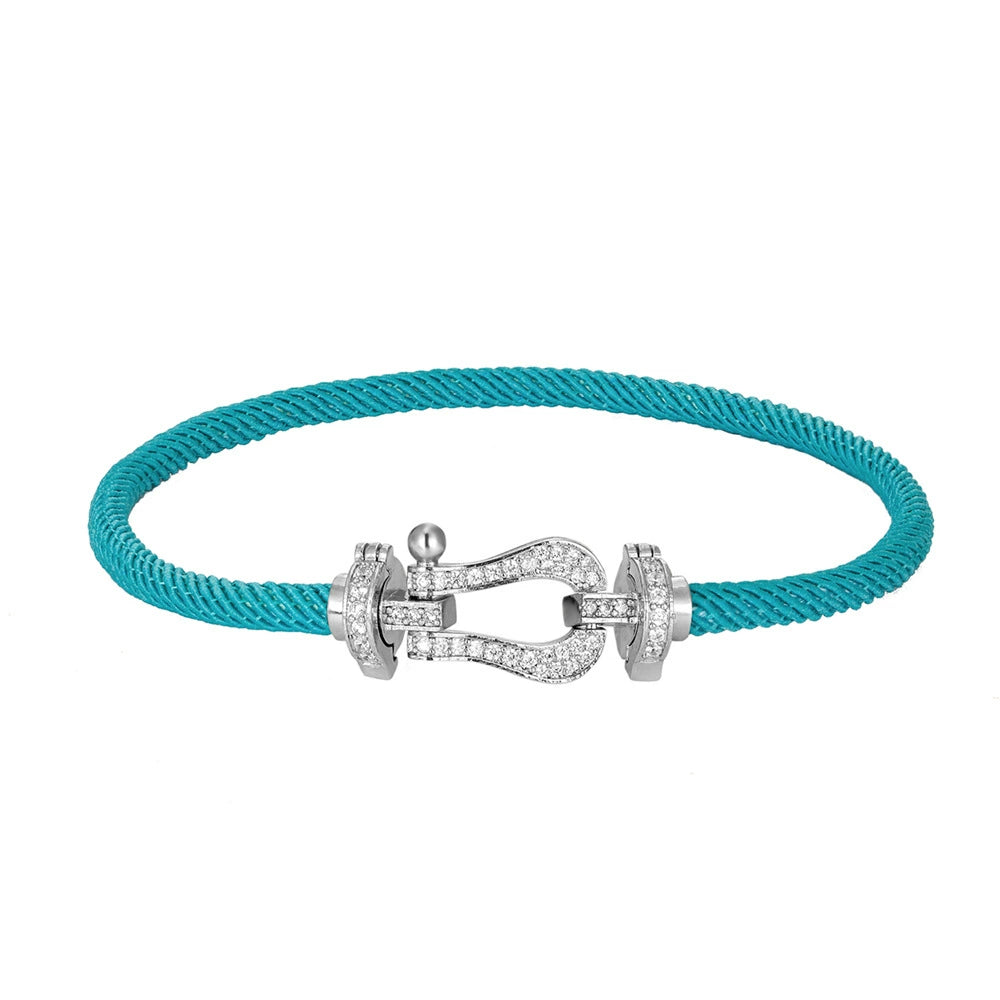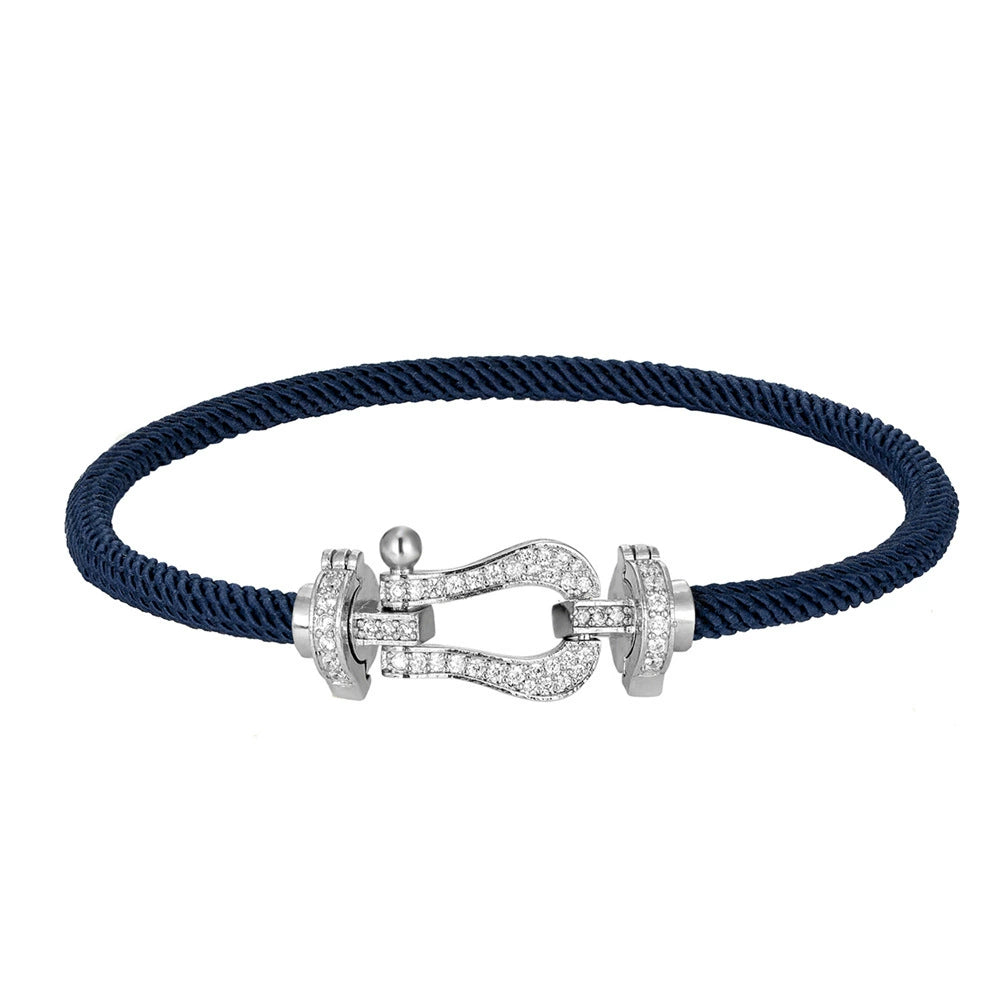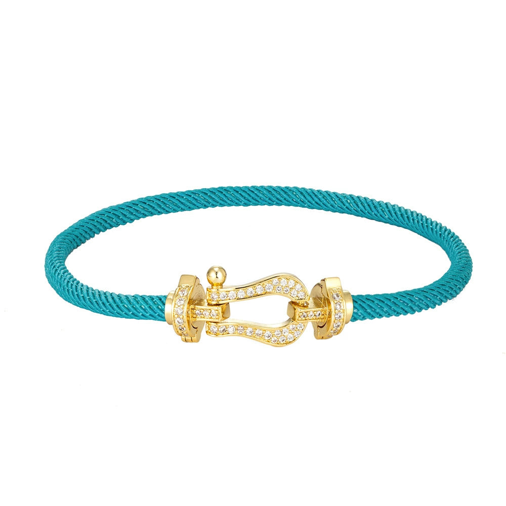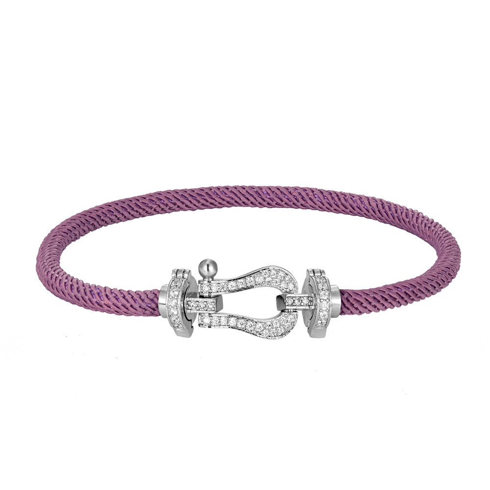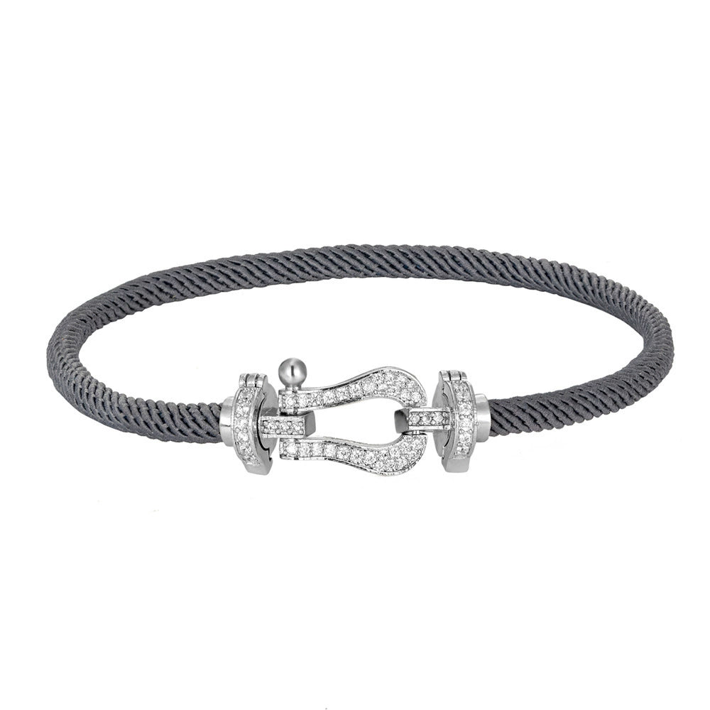 Wholesale Women's Fashion Woven Milan Rope Bracelet With Horseshoe Buckle And U Head Micro Inlaid Zircon Electroplated