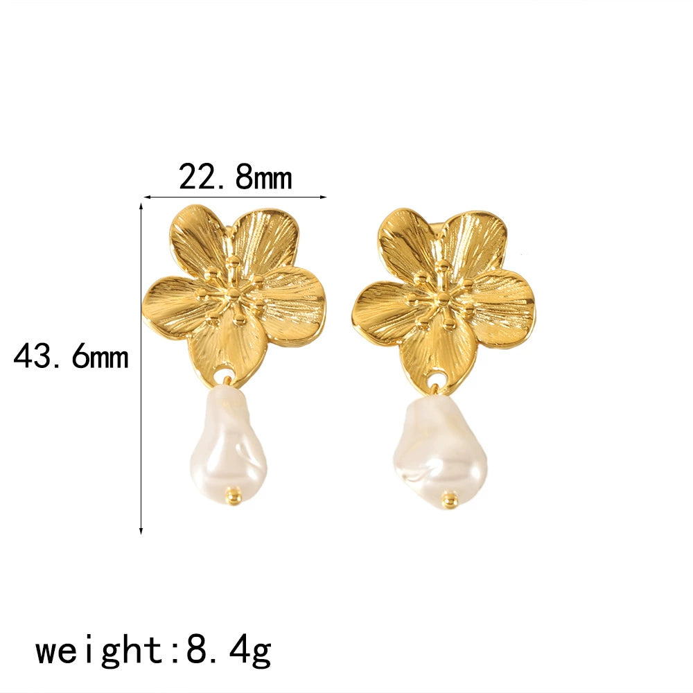 Wholesale Women's French Vintage Ins Style Flower Butterfly Leaf Titanium Steel Earrings With Electroplating