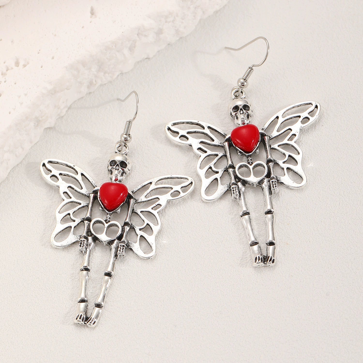 Wholesale Women's Gothic Skull Wing Earrings Alloy Geometric Retro Halloween Dark Style