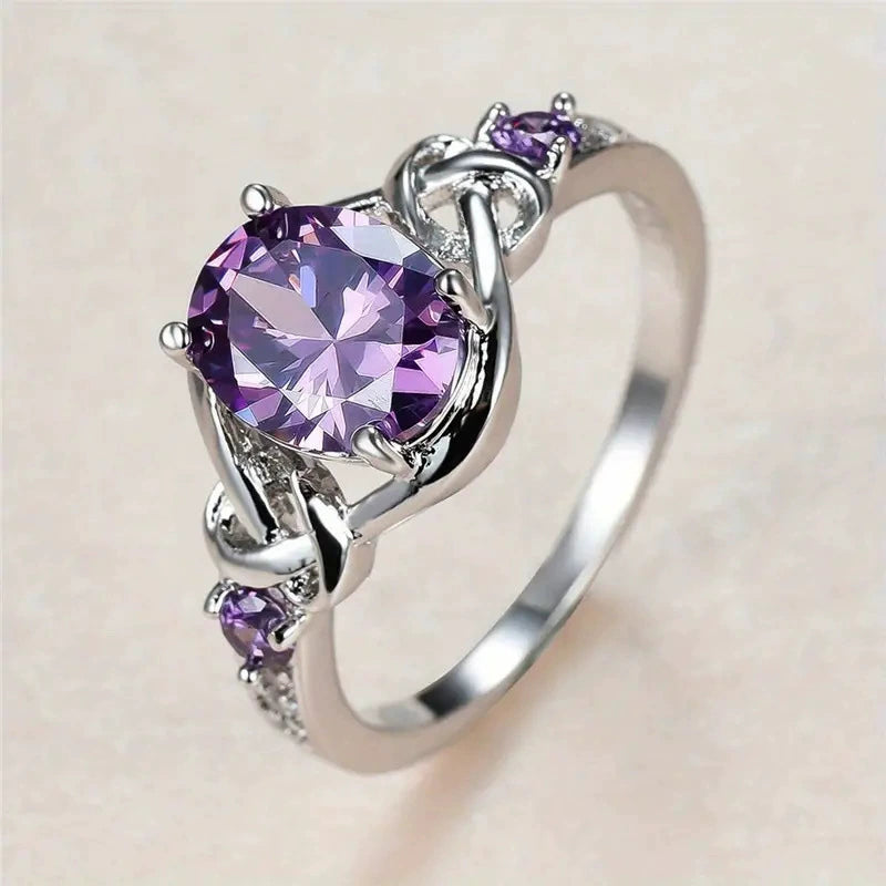 Wholesale Women's Inlaid Purple Oval Winding Ring Copper Geometric Zircon