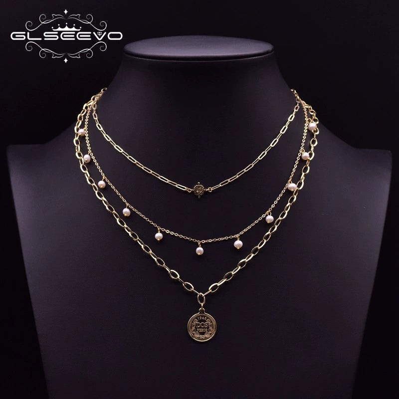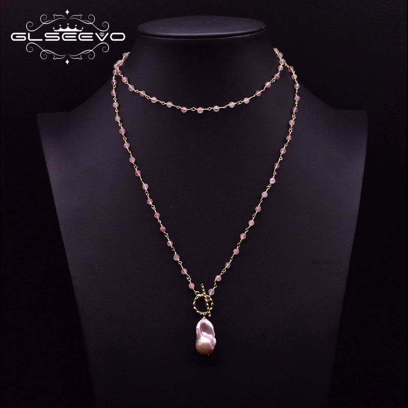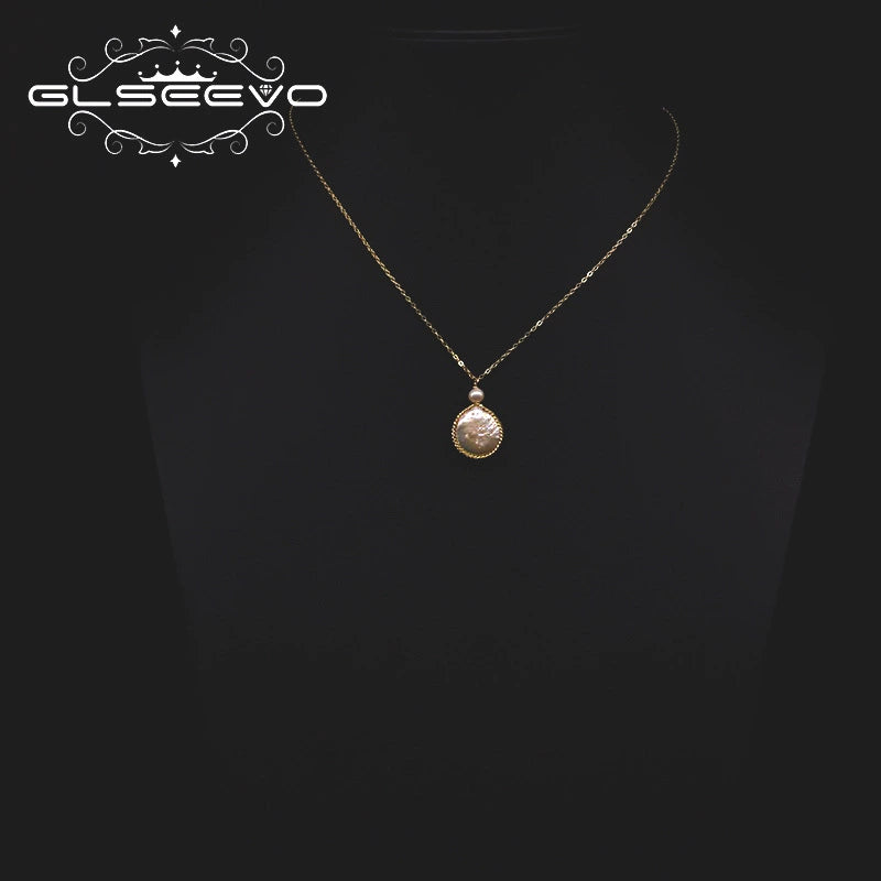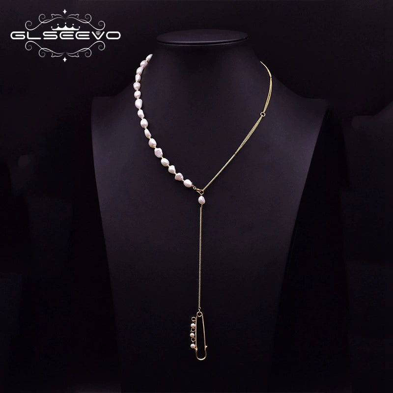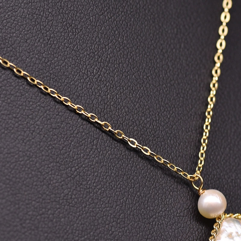 Wholesale Women's Natural Freshwater Pearl Necklace With Baroque Pearl Pendant And Snake Bone Chain Retro Geometric Style Heart Pattern Electroplated