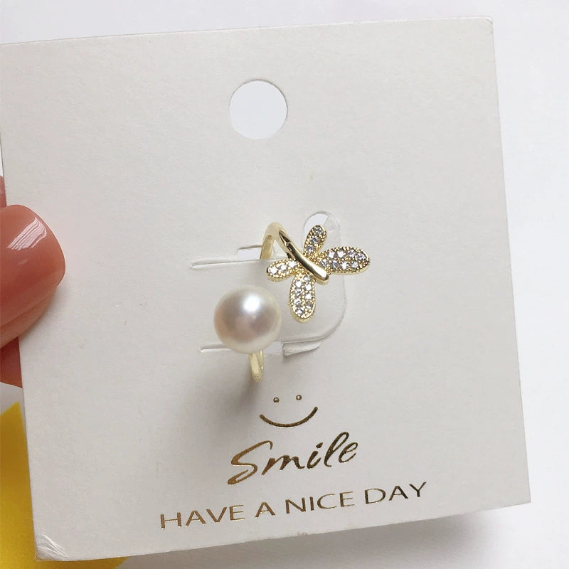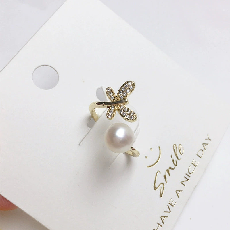 Wholesale Women's Natural Freshwater Pearl Ring Copper With 18K Gold Micro Inlay Aaa Zircon Dragonfly Design