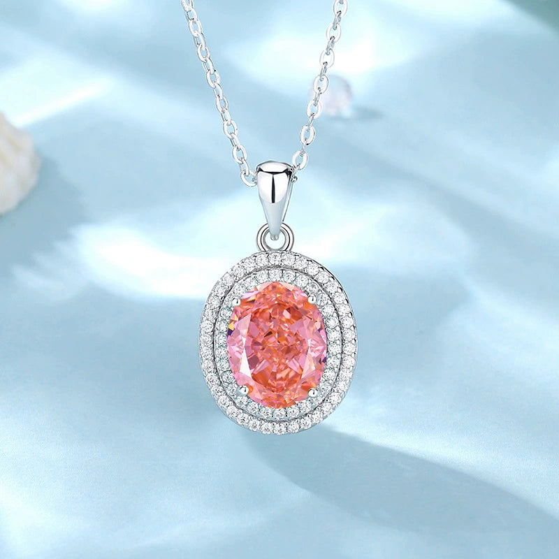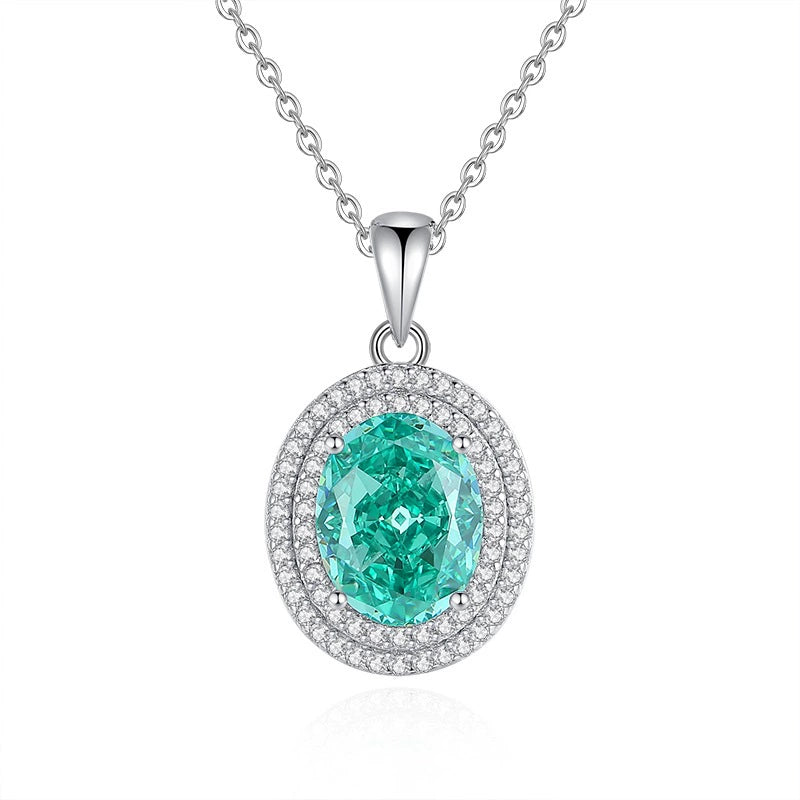 Wholesale Women's Oval Pendant Necklace 925 Sterling Silver High Carbon Diamond Geometric Design