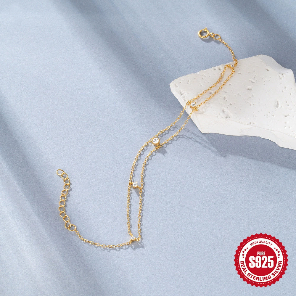 Wholesale Women's S925 Sterling Silver Geometric Double Diamond Fashion Bracelet Electroplated Stacked Wearing