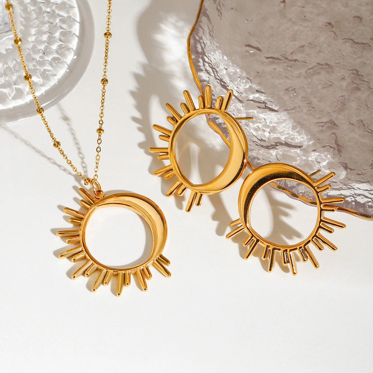 Wholesale Women's Stainless Steel Geometric Original Design Electroplated Sun Moon Hollow Star Moon Earrings