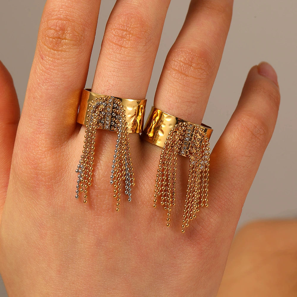 Wholesale Women's Stainless Steel Geometric Tassel Open Hammer Fashion Ring With Electroplating