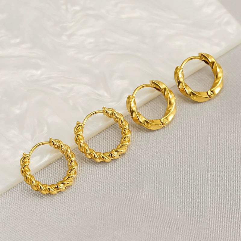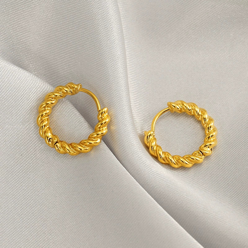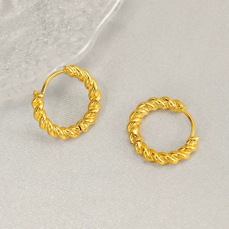 Wholesale Women's Titanium Steel Geometric Twist Hoop Earrings Electroplated