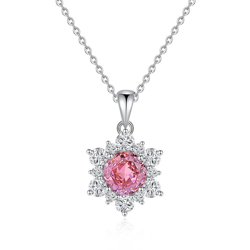 Women's 925 Sterling Silver Snowflake And Sunflower Pendant Necklace With Zircon And High Carbon Diamond