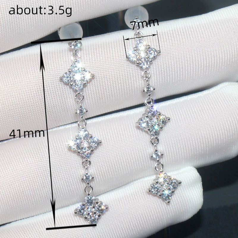 Women's Copper Long Earrings Inlaid Zircon Geometric Design