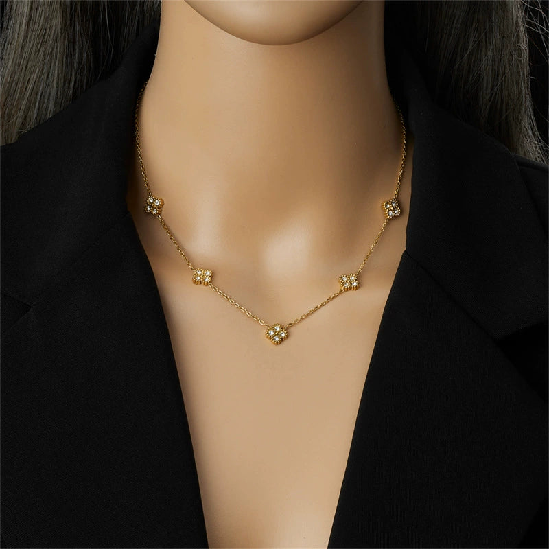 Women's Fourleaf Clover Stainless Steel Earrings And Necklace Set With 18K Gold Ins Electroplating