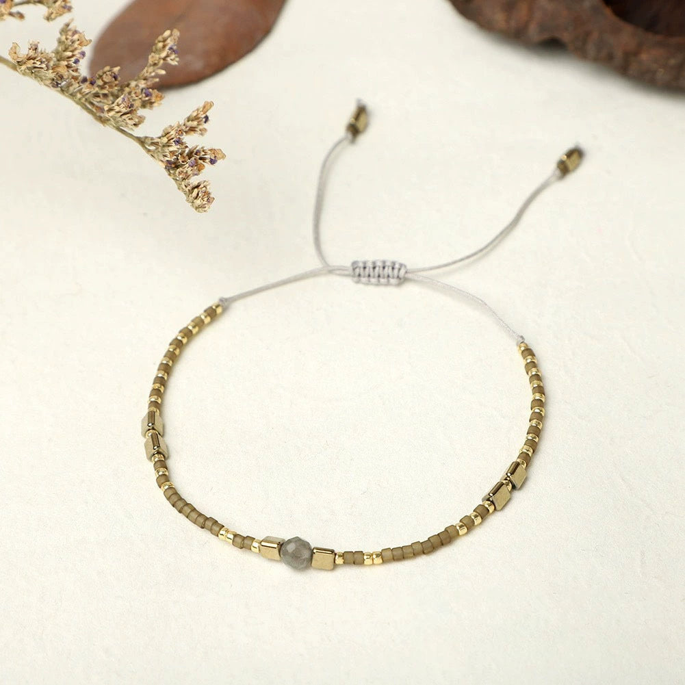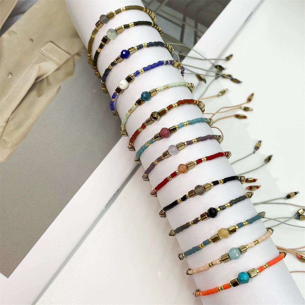 Women's Hand Beaded Small Bracelet With Miyuki Rice Beads Glass And Glaze Material Geometric Pattern Hand Woven Process