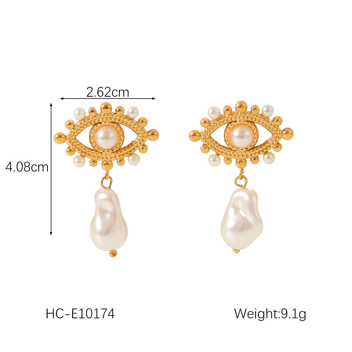 Women's Retro French Style Geometric Pearl Stainless Steel Electroplated Earrings