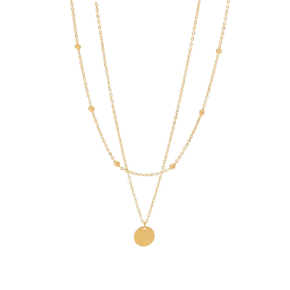 Women's Stainless Steel Double Layer Disc Pendant Necklace With 18K Gold Plated Electroplated Bead Chain And Geometric Design
